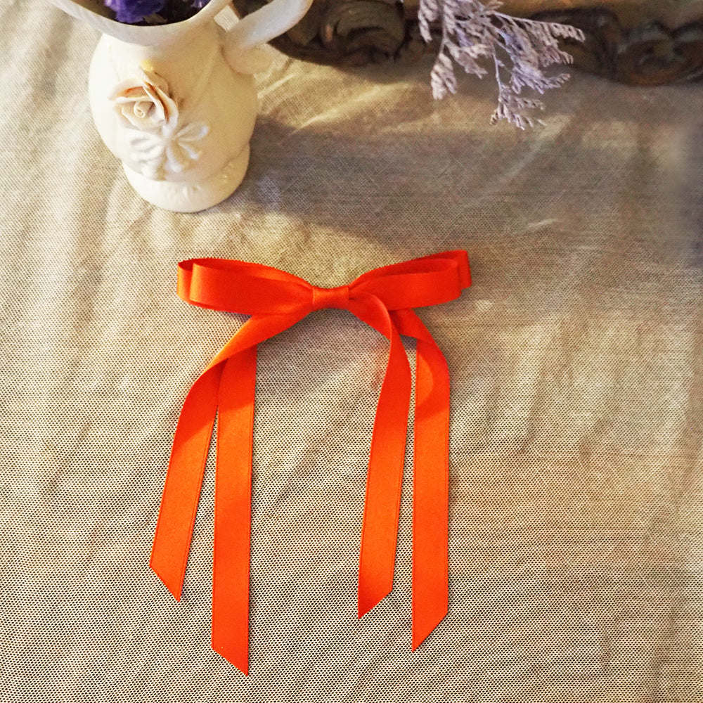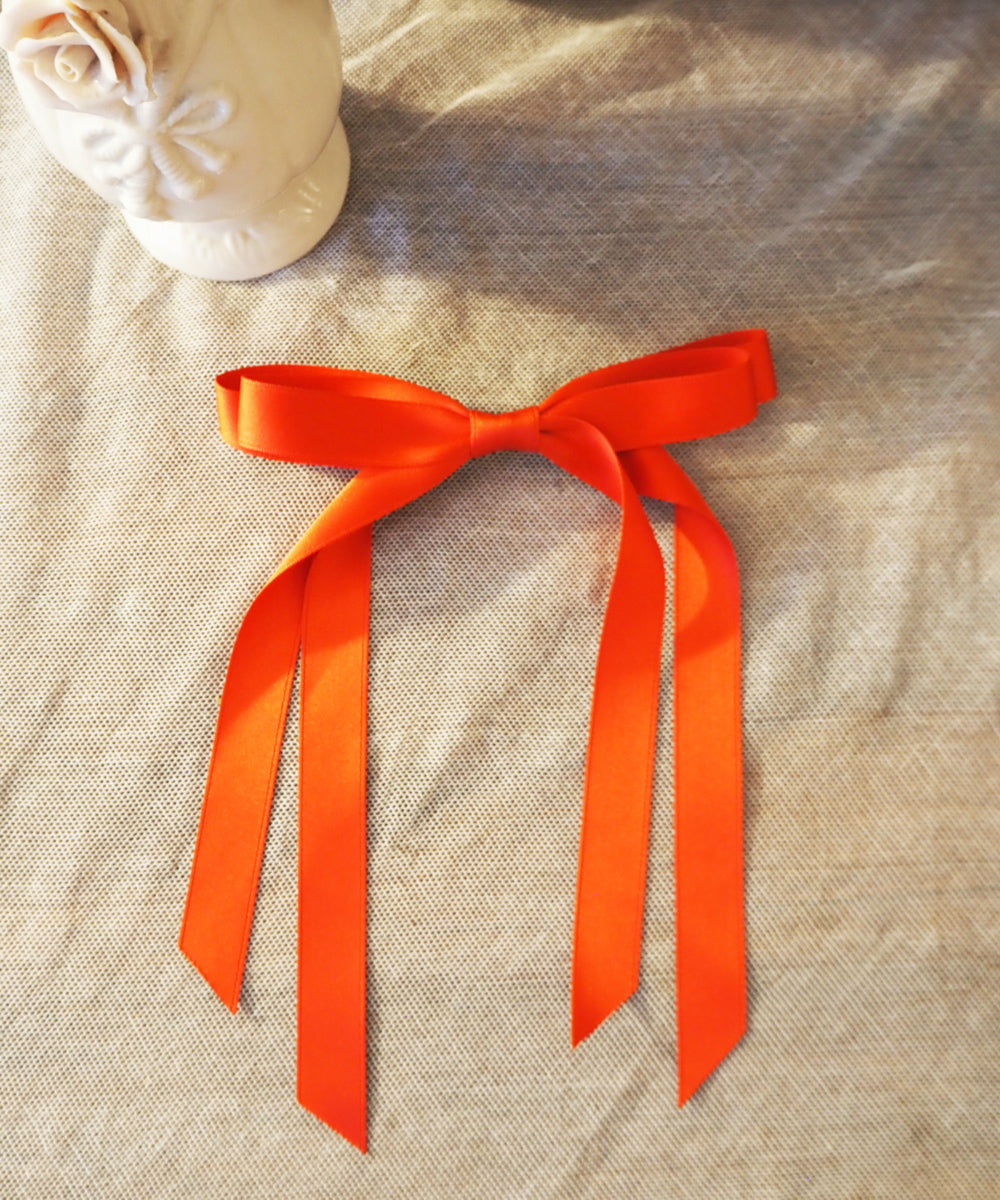 クラシカルなレッドリボンのヘアアクセサリー。細めのサテンリボン×バレッタ仕様です。